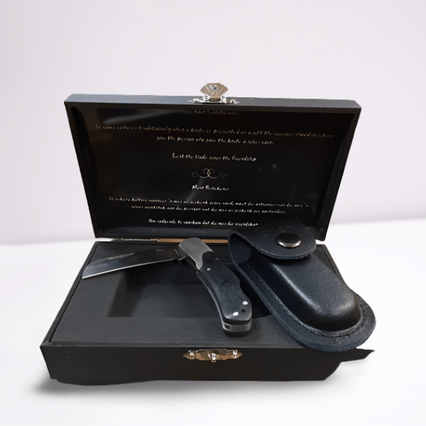 Another beautiful Enlan biltong knife, with a5CR15MOV Steel Blade. The Enlan Biltong-Bok is the perfect gift set. Complete with a leather pouch and a good quality wooden box.