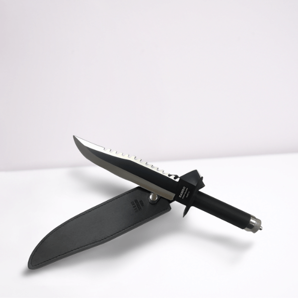 This classic style of Rambo knife includes a compass and survival kit conveniently located in the handle of the knife. The back of the handle easily unscrews to reveal this secret compartment…